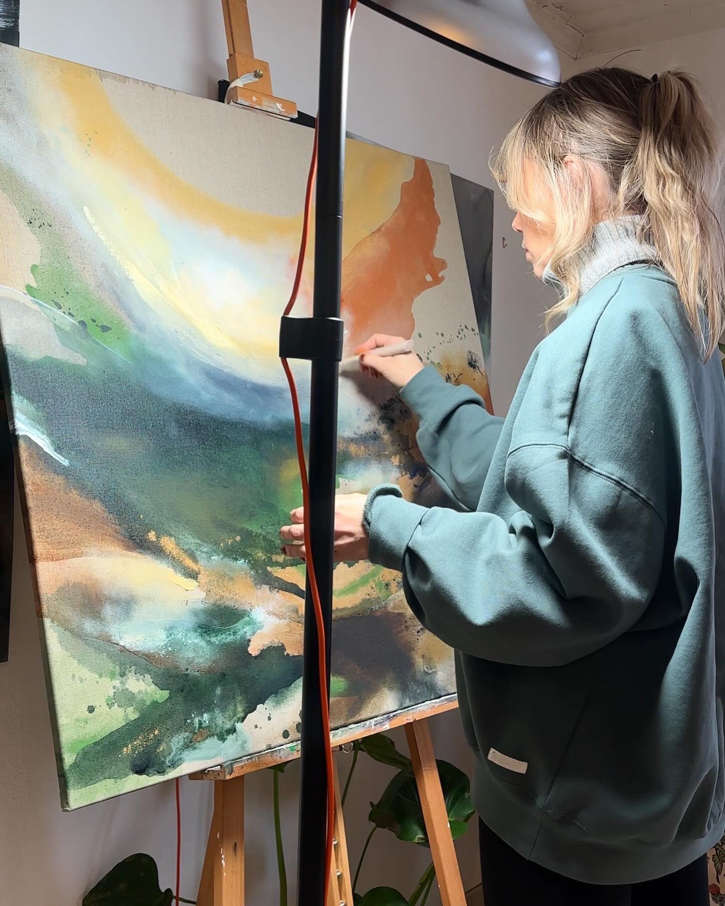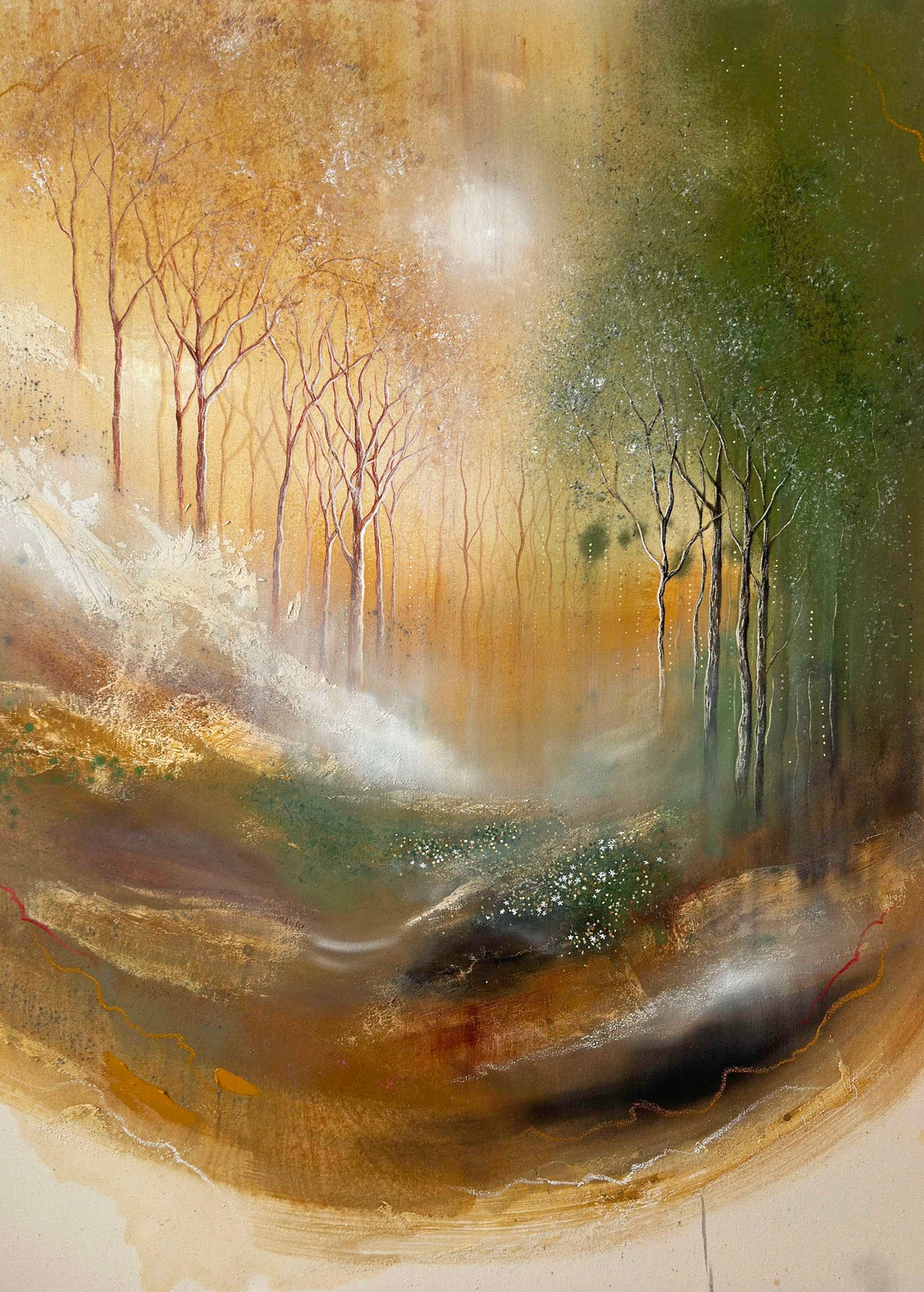 Denna serie målningar växte fram under övergången från sommar till höst, en tid då naturen själv är i förändring. Verken utforskar skiftet mellan rörelse och stillhet, mellan det välkända och det nya.