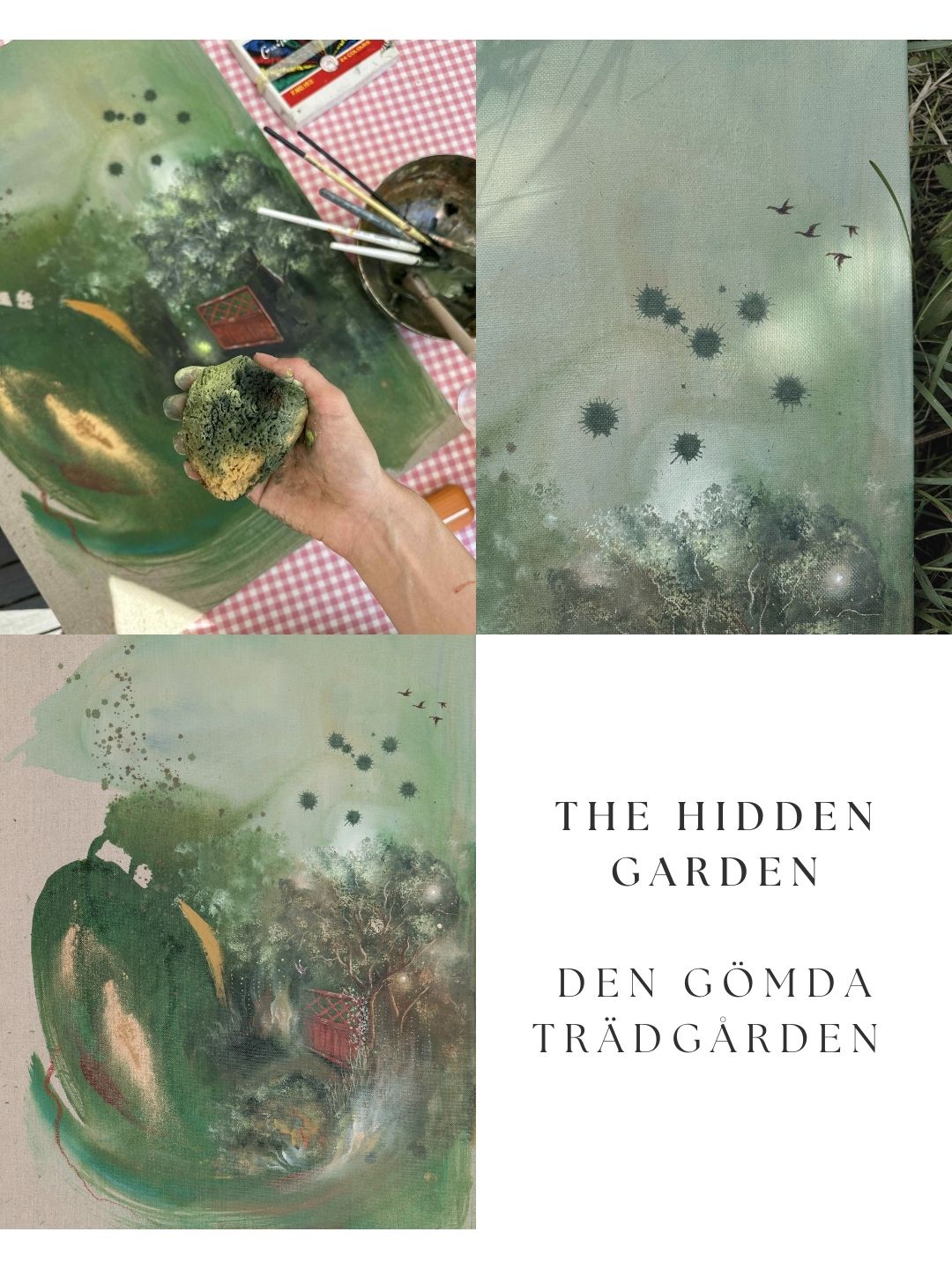 De första flödande lagren målades utomhus i en igenvuxen trädgård, omgiven av växtlighet. I målningarna syns bland annat detaljer som flygande gäss, skogslandskap och en röd grind. Symboler för övergångar, ett hem och en ny början.