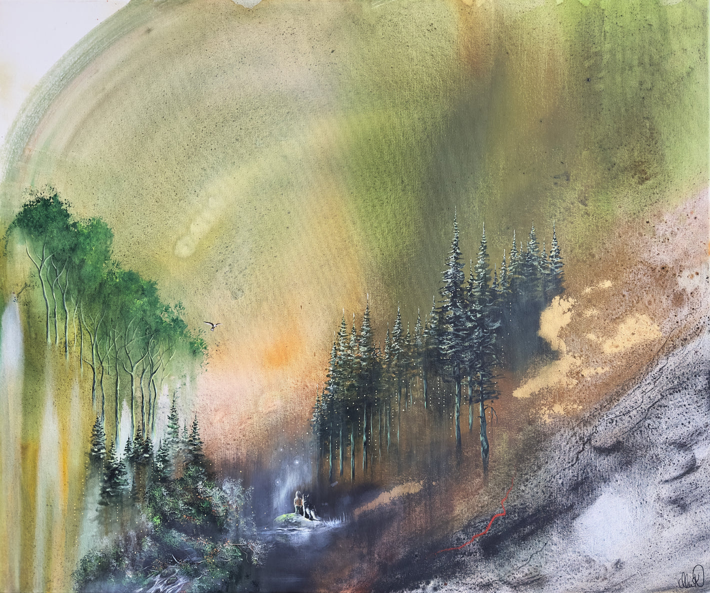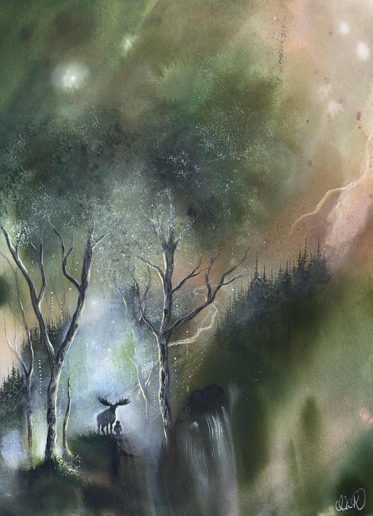 80x60 cm på bomullsduk. Målad med akrylfärg, jordpigment och detaljer med oljepasteller och kol.