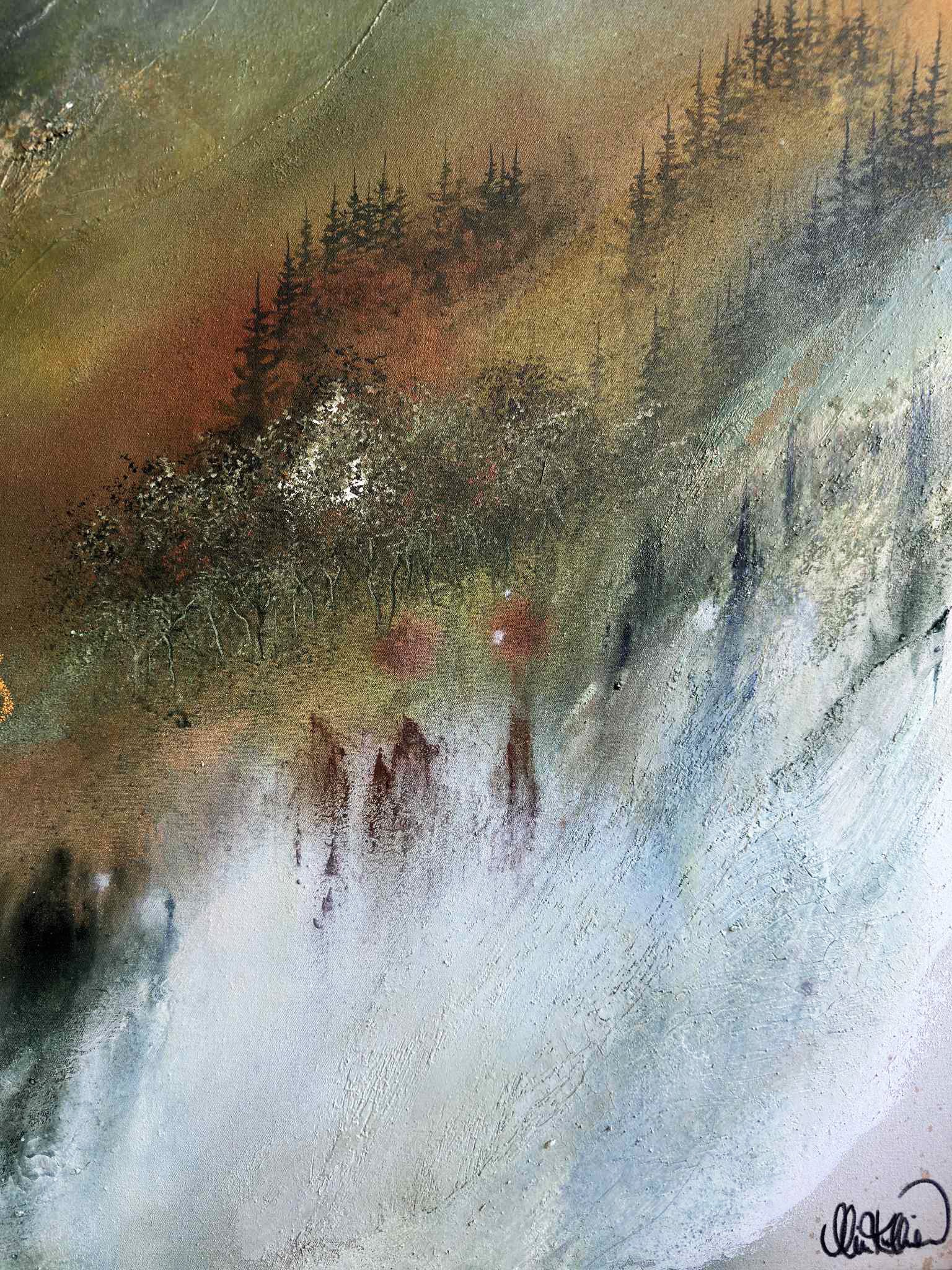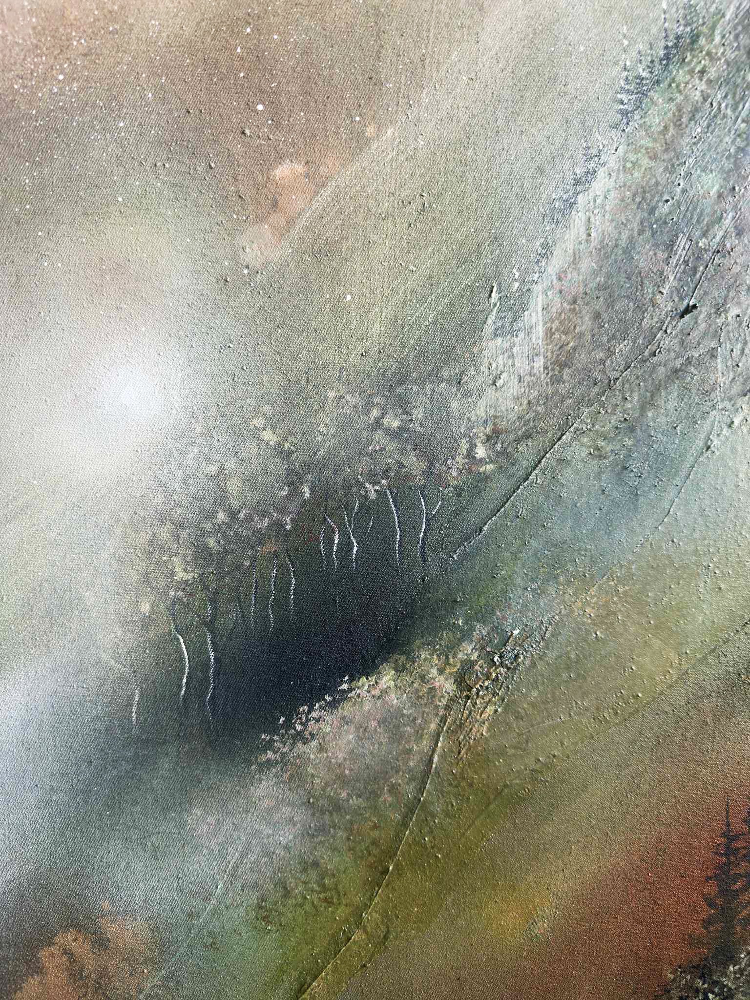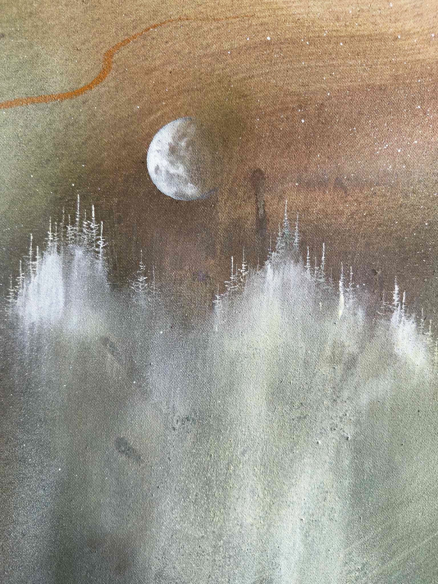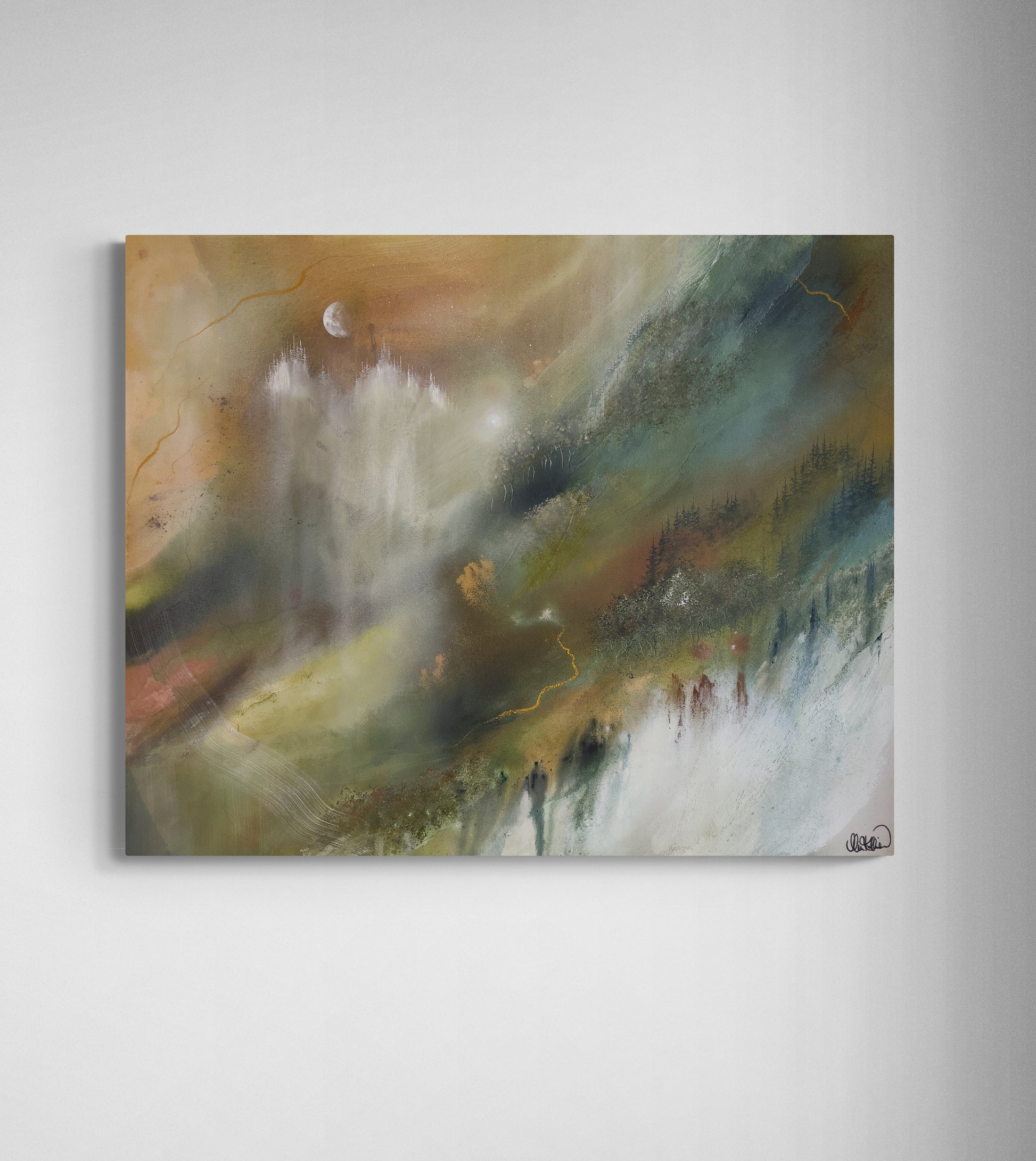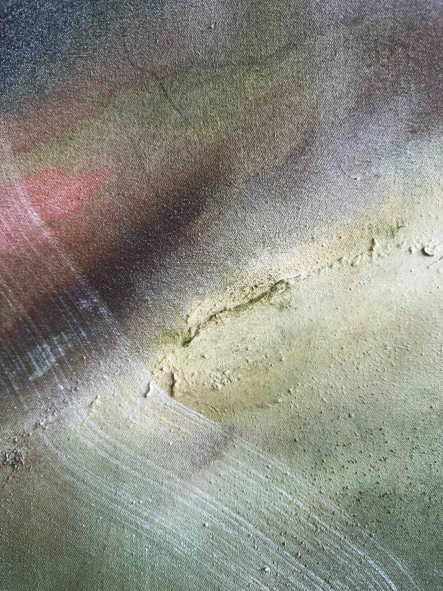 - Målad på bomullsduk som är behandlad med en transparent primer för att bevara dukens råa, naturliga yta och struktur.