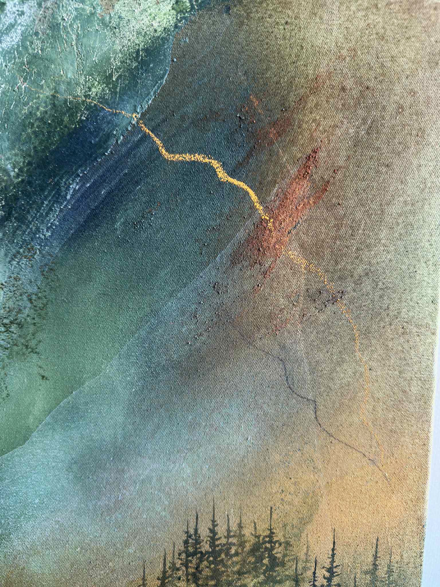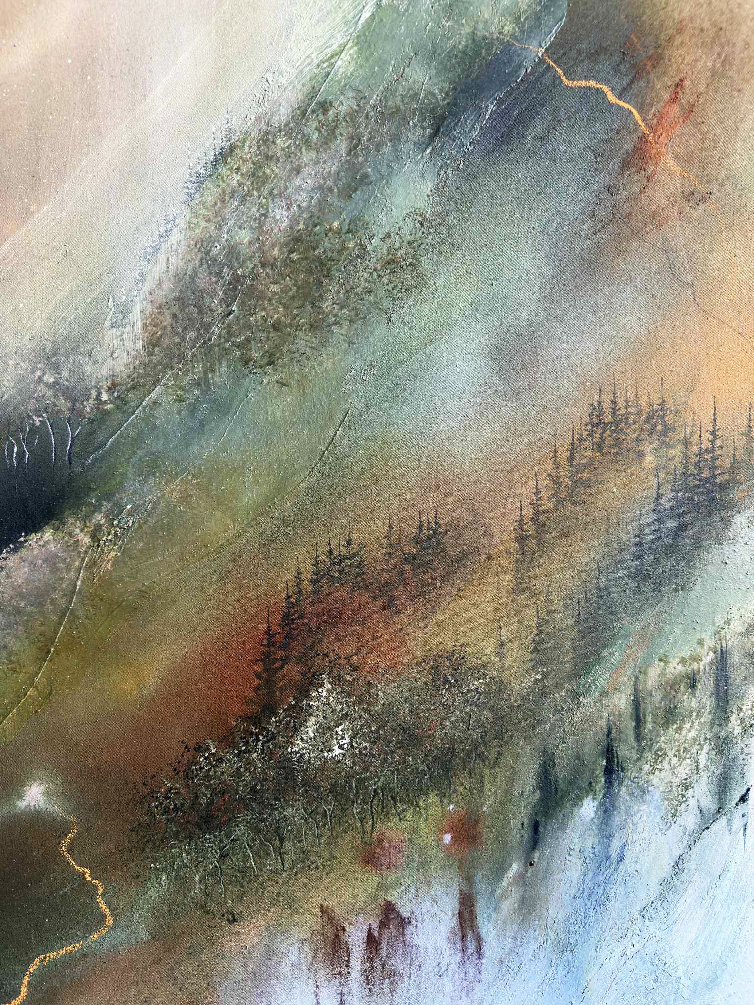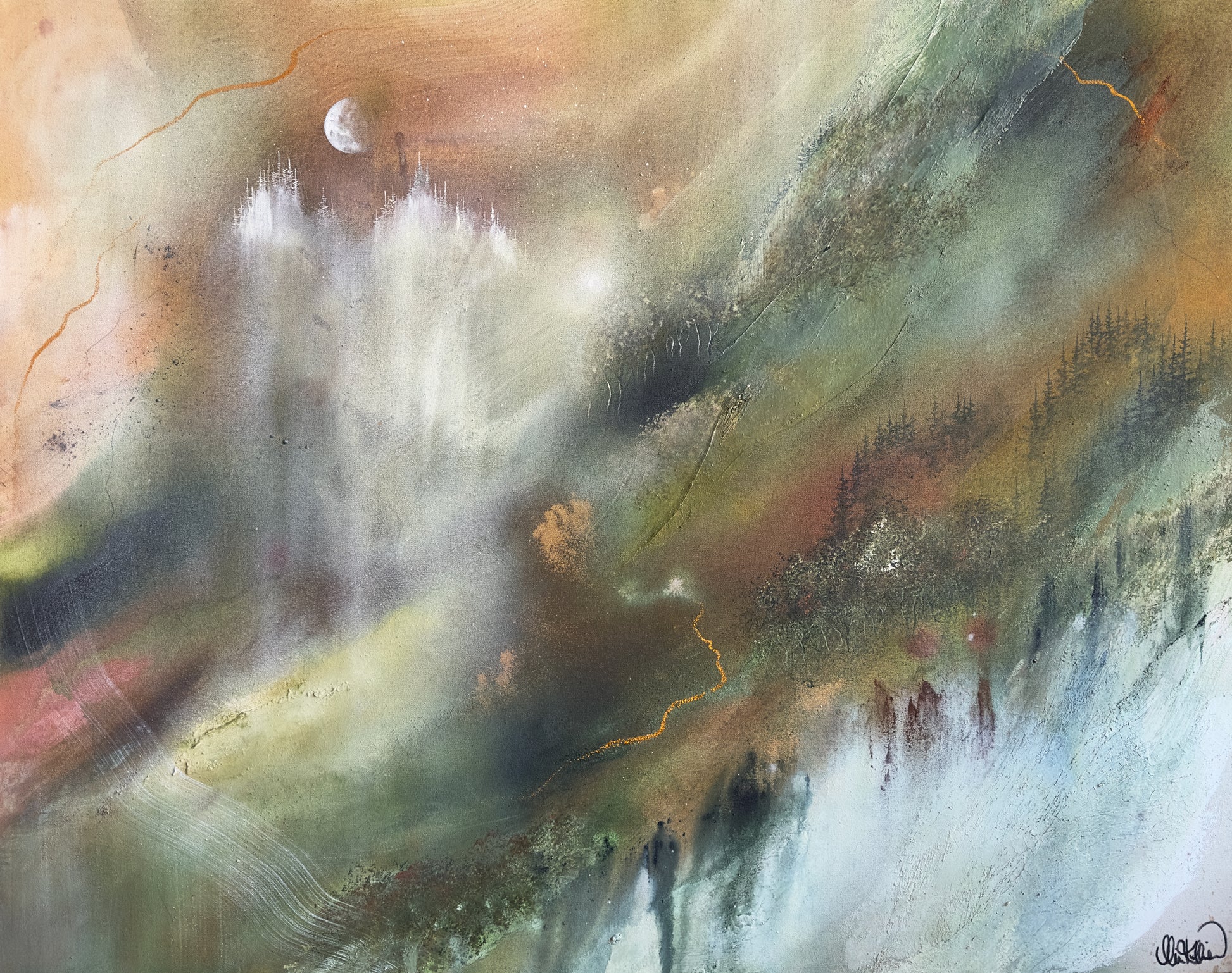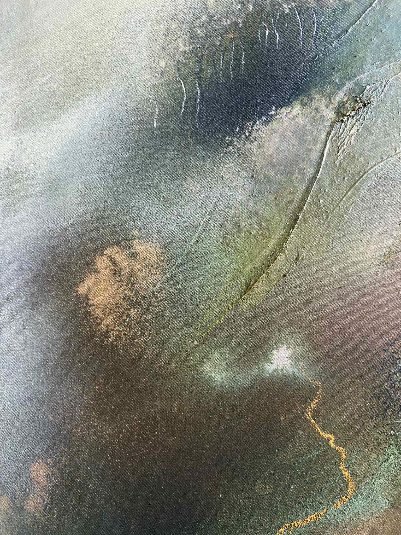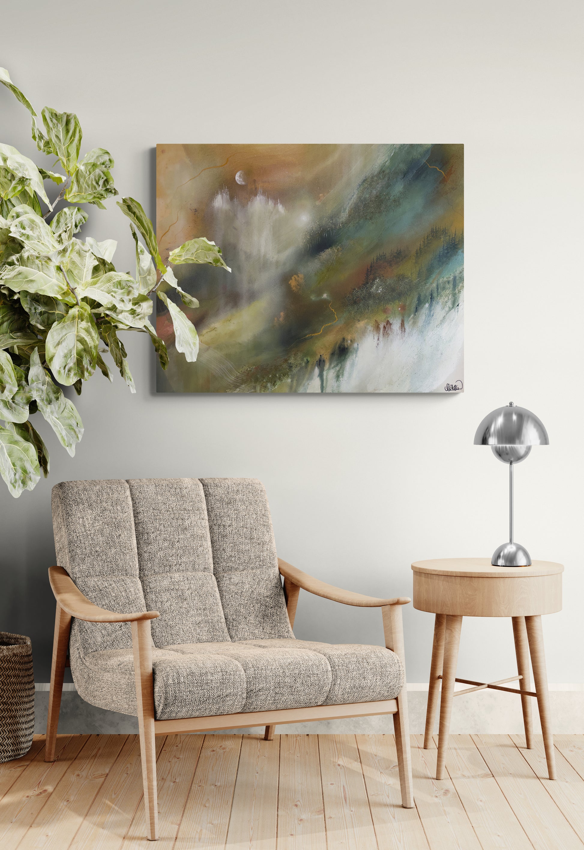 - Målad på bomullsduk som är behandlad med en transparent primer för att bevara dukens råa, naturliga yta och struktur.